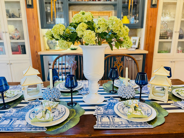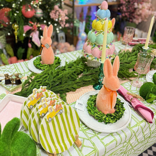 Create a charming Easter tablescape with soft pastels, layered textures, and delicate floral accents. Add playful touches like decorative eggs, sweet bunny figurines, and fresh spring blooms for a festive feel. Finish with glowing candles and thoughtful place settings to make every guest feel extra special!