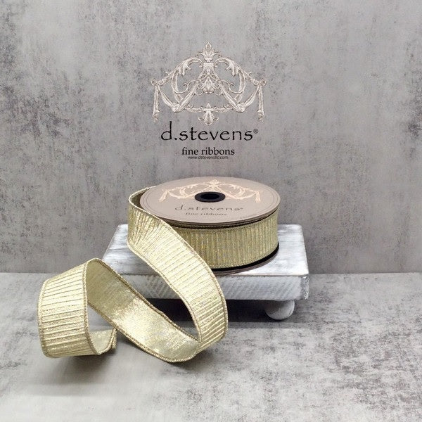 Pleated Lamé Champagne Ribbon, 1.5" X 10YD