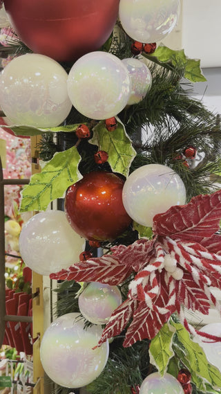 Decorating just got easier! Create a full and festive look by adding this mixed ball garland to your greenery. The mix of sizes in iridescence will add dimension to your decor.