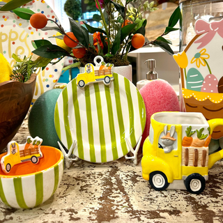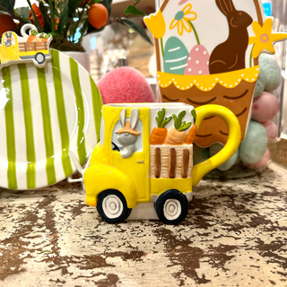 Start your day with a smile and serve up your favorite hot beverage in this Easter Truck Shaped Mug. Cheerful yellow with a truck-driving bunny and a large, comfortable handle, this ceramic mug will be your morning coffee go-to for bringing happy to each and every day. A perfect Easter design, this joyful bunny is also able to be coordinated with other Happy Everything! Add this mug to your collection and let the happy shine.